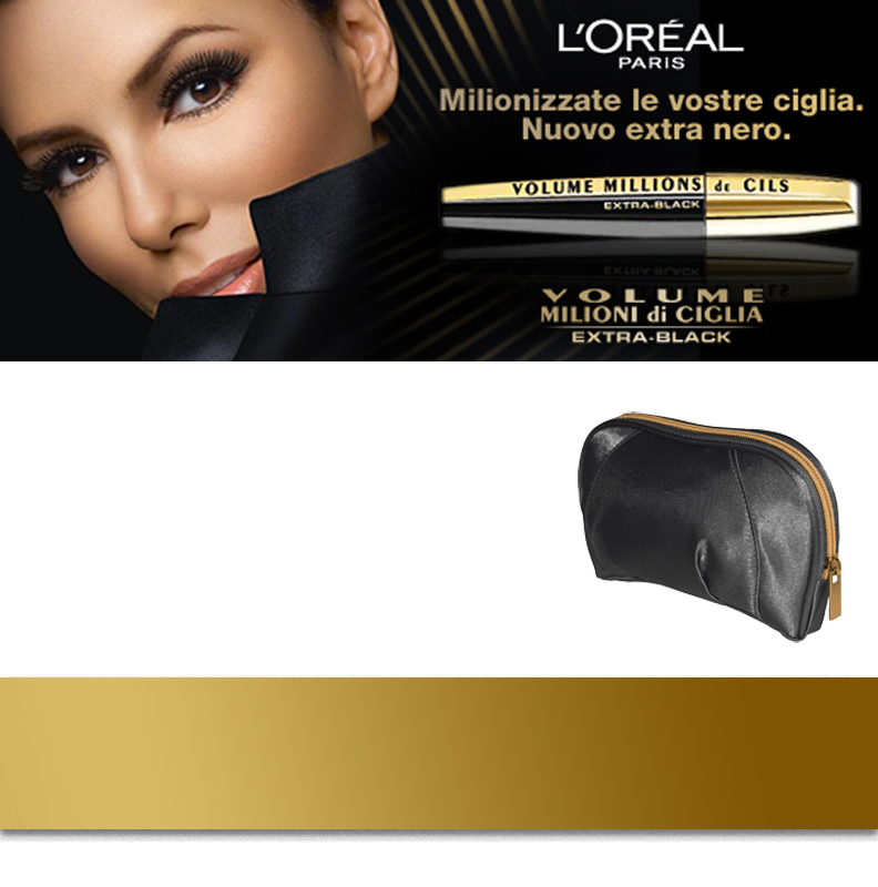 Fino al 31-12-2010 all’acquisto di un mascara “Volume Millions de Cils Extra Black avrete in omaggio una pochette (vedi immagine sopra).