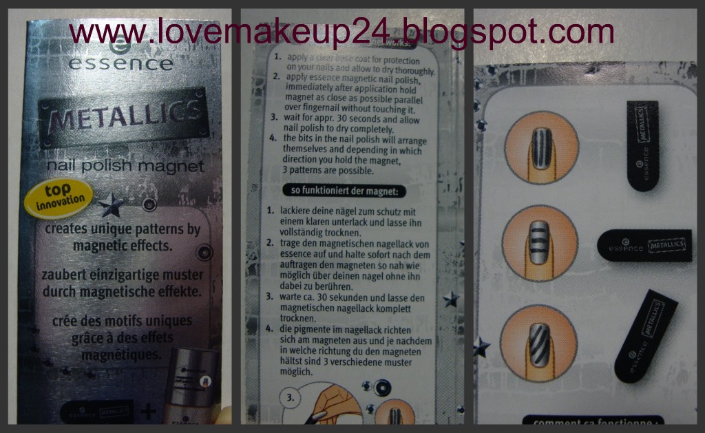 Tutta triste mi metto a girovagare per il web in cerca di non so quale sublime risposta in merito alla tragedia appena conclusasi. Arrivo su Yuotube e vedo vari video di dimostrazione su questi smalti e improvvisamente mi coloro di verde: verde invidia!!Perchè a tutte le altre funziona?! Perchè io devo essere una vera schiappa?! Poi guardo bene e mi rendo conto che tutte le altre sono state più inteliggenti: hanno comprato il magnete della essence!Ah l’arcano svelato…ma come diamine avranno fatto le ragazze che dicevano che qualsiasi calamita andava bene?! Mah…i misteri della vita!